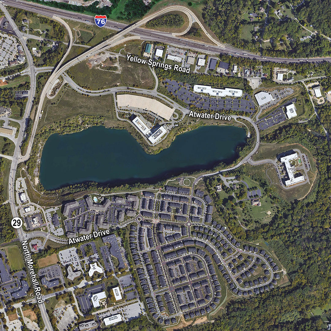 Before the 2010s, the Atwater area in East Whiteland Township looked completely different — a quarry that sat unused for decades. Thanks to strategic planning and the construction of the Route 29 interchange with I-76 (a major catalyst for growth in the area), this site has been transformed into the thriving mixed-use community we see today! A great example of land reclamation and reuse in action.